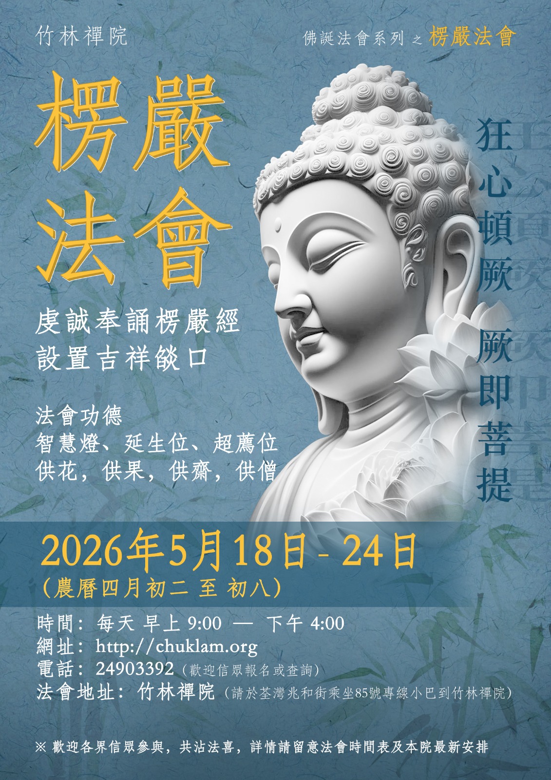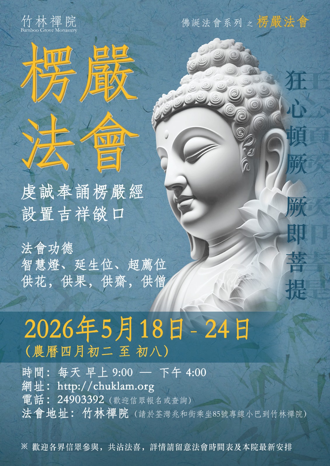 地址:香港荃灣芙蓉山竹林禪院